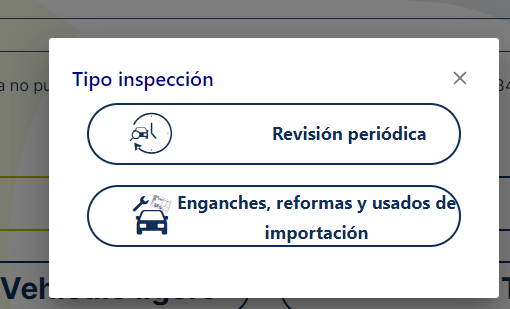 Selecciona el tipo de inspección que necesitas para continuar. Puede ser la revisión periódica habitual o una inspección por reforma o modificación realizada en el vehículo.